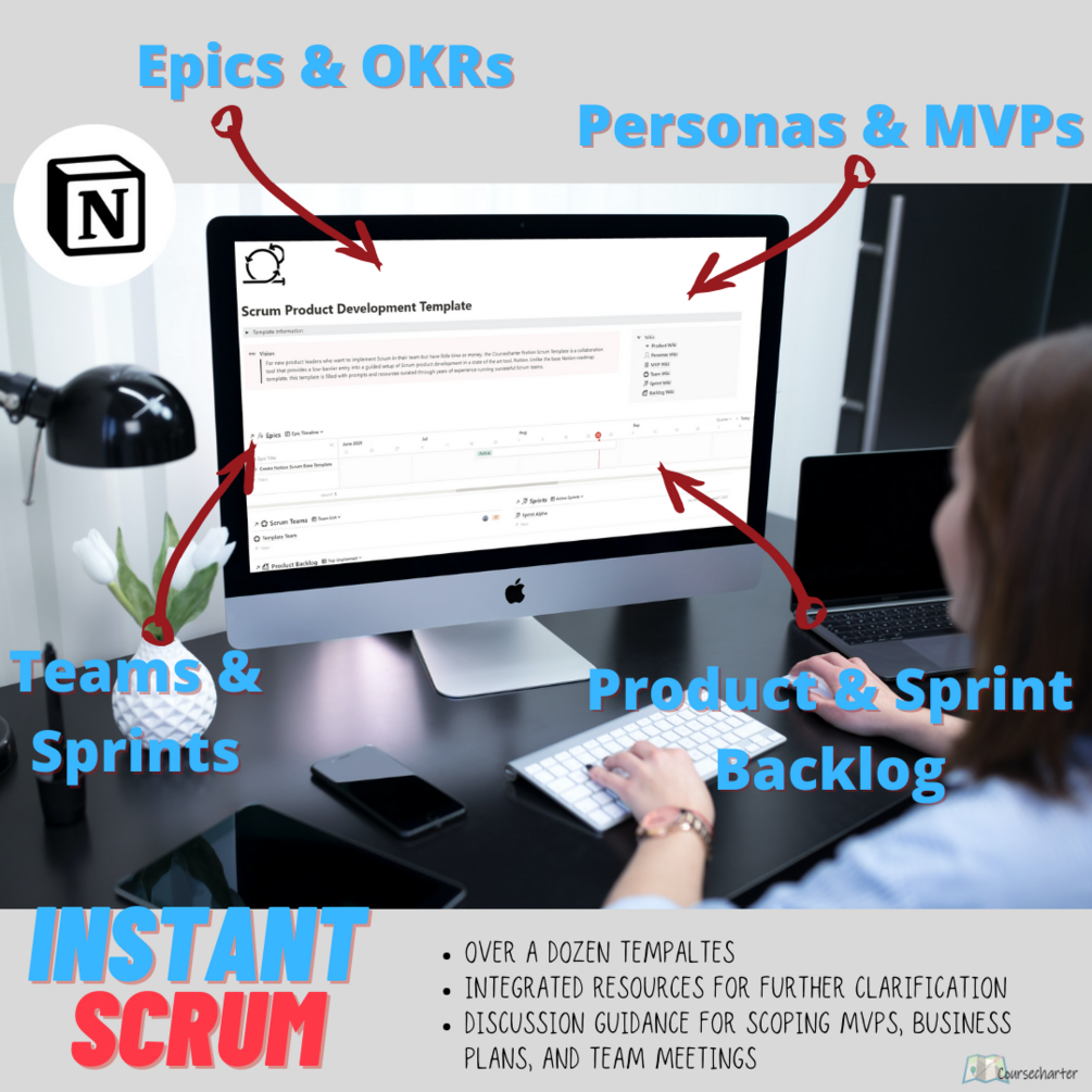 Taking Scrum development to the next level in Notion. Are you a scrum master or product owner setting up a new product team? The default Notion roadmap template not enough for your team to truly develop in an agile manner? Look no further. I have compressed my experience of Scrum product development into the foundational pieces to get your team running Scrum in a matter of hours. Spend time walking through the business model, your target customers, defining personas and writing requirements. Then get your team in motion with a roadmap, backlog planning and sprint management!